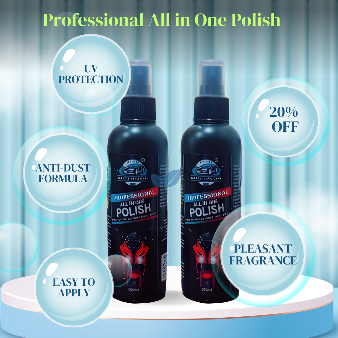 Transform your car’s interior with Miracle Auto Care’s Professional All-in-One Polish, now available in a convenient pack of two 200ml bottles. This versatile dashboard polish delivers exceptional results with its non-greasy formula that leaves a gentle, lasting shine. The easy-to-use spray application makes maintenance simple – just spray evenly, spread in circular motions, and give a gentle rub with a cotton or microfiber cloth for a high-gloss finish. Perfect for universal fit across all vehicle models, this polish features a pleasant aroma that enhances your car’s interior ambiance. The ergonomic spray bottle design ensures precise application, while the professional-grade formula helps maintain your dashboard’s appearance. Made in India, this polish comes in a compact package measuring 8x4x4 centimeters, making it easy to store in your car care kit. Keep your vehicle’s interior looking showroom-fresh with this premium dashboard polish that combines convenience with professional-grade results.